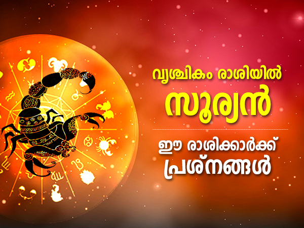 ജ്യോതിഷ പ്രകാരം ഗ്രഹങ്ങളുടെ രാജാവായി സൂര്യനെ കണക്കാക്കുന്നു. സൂര്യന് ഒരാളുടെ ആത്മാവിന്റെ നാഥനാണെന്ന് പറയപ്പെടുന്നു. പ്രതിരോധശേഷി, പോസിറ്റിവിറ്റി, സ്റ്റാമിന, അര്പ്പണബോധം എന്നിവ നല്കി സൂര്യന് എല്ലാവരേയും അനുഗ്രഹിക്കുന്നു. നവംബര് മാസത്തില് സൂര്യന്റെ സംക്രമണം നടക്കുന്നു. നവംബര് 16ന് സൂര്യന് വൃശ്ചിക രാശിയിലേക്ക് സംക്രമിക്കും. അത് ഓരോ രാശിയിലും വ്യത്യസ്തമായ രീതിയില് സ്വാധീനം ചെലുത്തും.