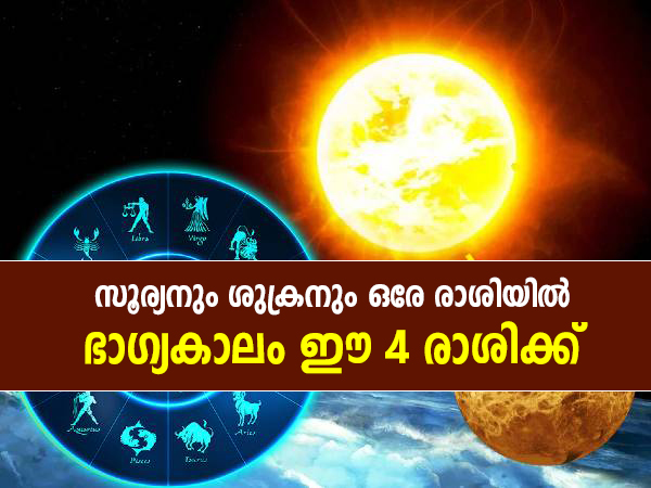 സൂര്യനും ശുക്രനും ഒരേ രാശിയില്; ഈ 4 രാശിക്കാര്ക്ക് ഭാഗ്യം ഉദിച്ചുയരും