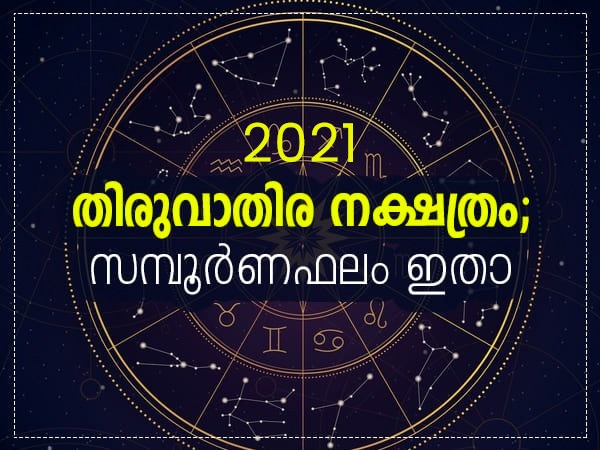27 നക്ഷത്രങ്ങളില് ആറാമത്തെ നക്ഷത്രമാണ് തിരുവാതിര നക്ഷത്രം. ഈ നക്ഷത്രത്തിന്റെ ഫലങ്ങള് ഏതൊക്കെയെന്ന് നമുക്ക് നോക്കാവുന്നതാണ്. 2021 ഈ നക്ഷത്രക്കാരെ എങ്ങനെ വരവേല്ക്കുന്നു എന്ന് നമുക്ക് അറിഞ്ഞിരിക്കാവുന്നതാണ്. 2021 മലയാള നക്ഷത്രം അല്ലെങ്കില് ജന്മനക്ഷത്രം കേരള ജ്യോതിഷത്തെ അടിസ്ഥാനമാക്കിയുള്ള പ്രവചനങ്ങള് എന്തൊക്കെയെന്നത് ഓരോരുത്തരിലും ആകാംഷ നിറക്കുന്ന ഒന്നാണ്. 2021 ജനുവരി, ജൂലൈ, ഓഗസ്റ്റ്, ഒക്ടോബര് മാസങ്ങളാണ് തിരുവാതിര നക്ഷത്രക്കാര്ക്ക് നല്ല മാസം.