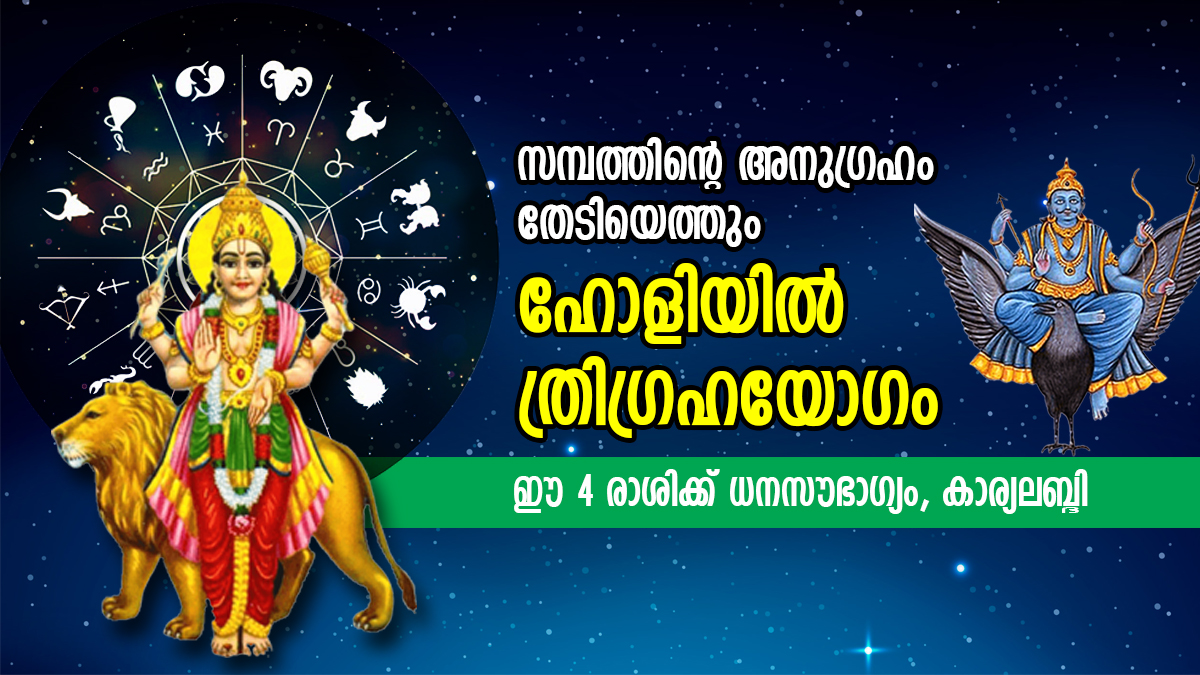 ഭാഗ്യം കുതിച്ചുയരും, അപൂര്വ്വ നേട്ടങ്ങള്; ഹോളിയില് ത്രിഗ്രഹയോഗം നല്കും ഈ 4 രാശിക്ക് ധനസൗഭാഗ്യം