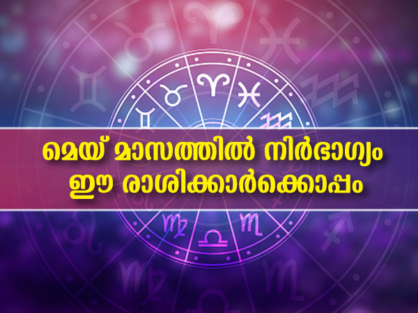 മെയ് മാസത്തില് നിങ്ങളുടെ രാശി ഇനി പറയുന്നവയില് ഏതെങ്കിലും ആണെങ്കില് അത് എന്തൊക്കെ ഫലമാണ് നിങ്ങള്ക്ക് നല്കുന്നത് എന്ന് നോക്കാവുന്നതാണ്. 12 രാശിക്കാരില് ചിലര്ക്കെങ്കിലും ദോഷഫലങ്ങള് ഉണ്ടാവുന്നുണ്ട്. അത് ഏതൊക്കെ രാശിക്കാരാണ് എന്ന് നമുക്ക് നോക്കാം. ജ്യോതിഷത്തില് ഓരോരുത്തരുടേയും ജനനസമയത്തിന്റേയും നാഴികയും വിനാഴികയും നോക്കിയാണ് കാര്യങ്ങള് പറയുന്നത്. അതുകൊണ്ട് തന്നെ ഈ ലേഖനത്തില് പറയുന്നത് പൊതുവായ ഫലമാണ്.