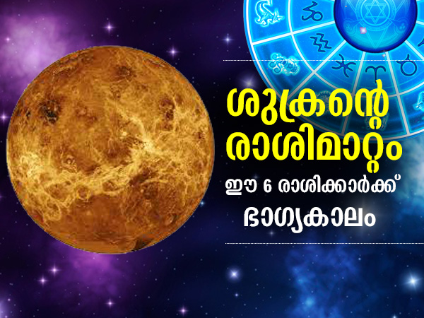ശുക്രന്റെ രാശിമാറ്റം; ഈ 6 രാശിക്കാര്ക്ക് ഭാഗ്യകാലം മുന്നില്