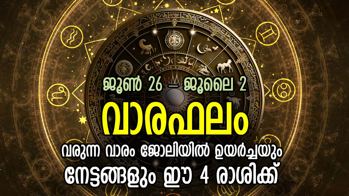 Weekly Horoscope: മാസത്തിലെ അവസാന വാരം ജൂണ് 26 മുതല് ആരംഭിക്കാന് പോകുന്നു. വരുന്ന ആഴ്ച പല രാശിക്കാര്ക്കും ശുഭവാര്ത്തകള് ലഭിക്കും. പല രാശിക്കാര്ക്കും വിജയത്തിന്റെ പടവുകള് കയറും. നിങ്ങള് ചെയ്യുന്ന ഏത് ജോലിയിലും നിങ്ങള്ക്ക് വിജയം ലഭിക്കും. തൊഴിലിന്റെ കാര്യത്തില്, വരുന്ന ആഴ്ച പല രാശിക്കാര്ക്കും അനുകൂലമായിരിക്കും.