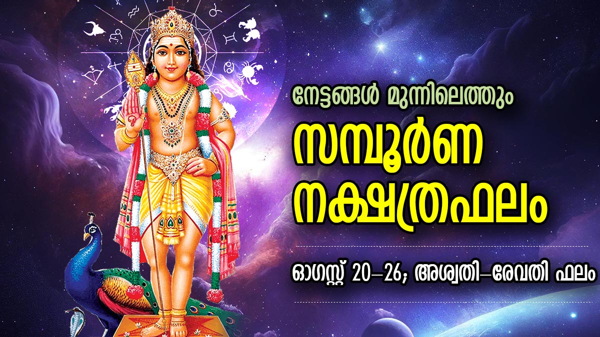ഓഗസ്റ്റ് മാസത്തിലെ നാലാമത്തെ ആഴ്ചയിലേക്ക് കടക്കുകയാണ് നാം. ഓണത്തിന്റെ വരവറിയിച്ച് അത്തം നാള് വരുന്നത് ഈ ആഴ്ചയുടെ തുടക്കത്തോടെയാണ്. ഓഗസ്റ്റ് 20 ഞായറാഴ്ചയാണ് അത്തം നാള് വരുന്നത്. ഞായറാഴ്ച തന്നെയാണ് ഗണേശ ചതുര്ത്ഥിയും വരുന്നത്. ഓഗസ്റ്റ് 22ന് ചിങ്ങമാസത്തിലെ ഷഷ്ഠി വ്രതമാണ്. ഈ ദിവസം ഭക്തര് വ്രതമെടുത്ത് സുബ്രഹ്മണ്യ സ്വാമിയെ ആരാധിക്കുന്നു. ശുഭദിനങ്ങള് നിറഞ്ഞ ഈ ആഴ്ച 27 നക്ഷത്രക്കാര്ക്കും ജീവിതത്തില് എന്തൊക്കെ മാറ്റം വരുമെന്ന് അറിയാന് ഈ ആഴ്ചയിലെ നക്ഷത്രഫലം വായിക്കൂ.