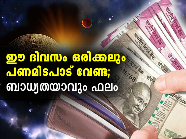 പണമിടപാട് വേണ്ട ഈ ദിവസം; ബാധ്യത ഫലം