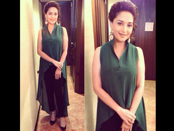 പുതിയ വസ്ത്ര ഡിസൈനറായ നിഖില് തമ്പി ഡിസൈന് ചെയ്ത മോഡേണ് വസ്ത്രമണിഞ്ഞാണ് മാധുരി അടുത്തിടെ തന്റെ പുതിയ ചിത്രമായ ഗുലാബ് ജംഗ് എ്ന്ന ചിത്രത്തെക്കുറിച്ചുള്ള പ്രസ് മീറ്റിനെത്തിയത്. ഇതോടൊപ്പം അമ്രപാലി ആഭരണങ്ങളും ഇവര് ധരിച്ചിരുന്നു.