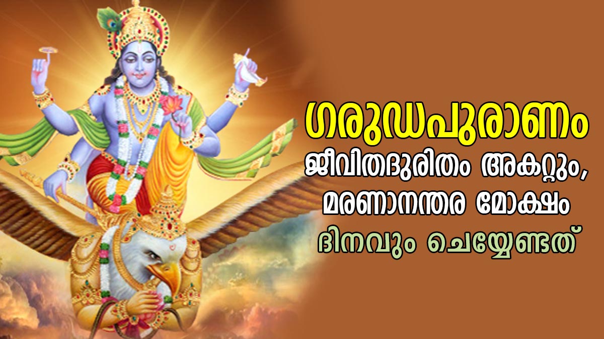 അറിവ്, ഭക്തി, സല്കര്മ്മങ്ങള് എന്നിവയെ അടിസ്ഥാനമാക്കിയുള്ള 18 മഹാപുരാണങ്ങളില് ഒന്നാണ് ഗരുഡപുരാണം. ജീവിതത്തിന്റെ രൂപരേഖ മെച്ചപ്പെടുത്തുകയും ഒരു വ്യക്തിയുടെ ജീവിതം മികച്ചതാക്കുകയും ചെയ്യുന്ന നിരവധി കാര്യങ്ങള് ഇതില് പരാമര്ശിക്കുന്നുണ്ട്. നിങ്ങളുടെ ജീവിതത്തില് ഗരുഡപുരാണത്തിലെ നിയമങ്ങളും ഉപദേശങ്ങളും നടപ്പിലാക്കുന്നതിലൂടെ നിങ്ങള്ക്ക് ജീവിതത്തിലെ പ്രശ്നങ്ങളെ മറികടക്കാന് കഴിയും. ഗരുഡപുരാണത്തില് ഒരാളുടെ ജനനം മുതല് മരണം വരെയുള്ള എല്ലാ കാര്യങ്ങളും പറഞ്ഞിട്ടുണ്ട്.