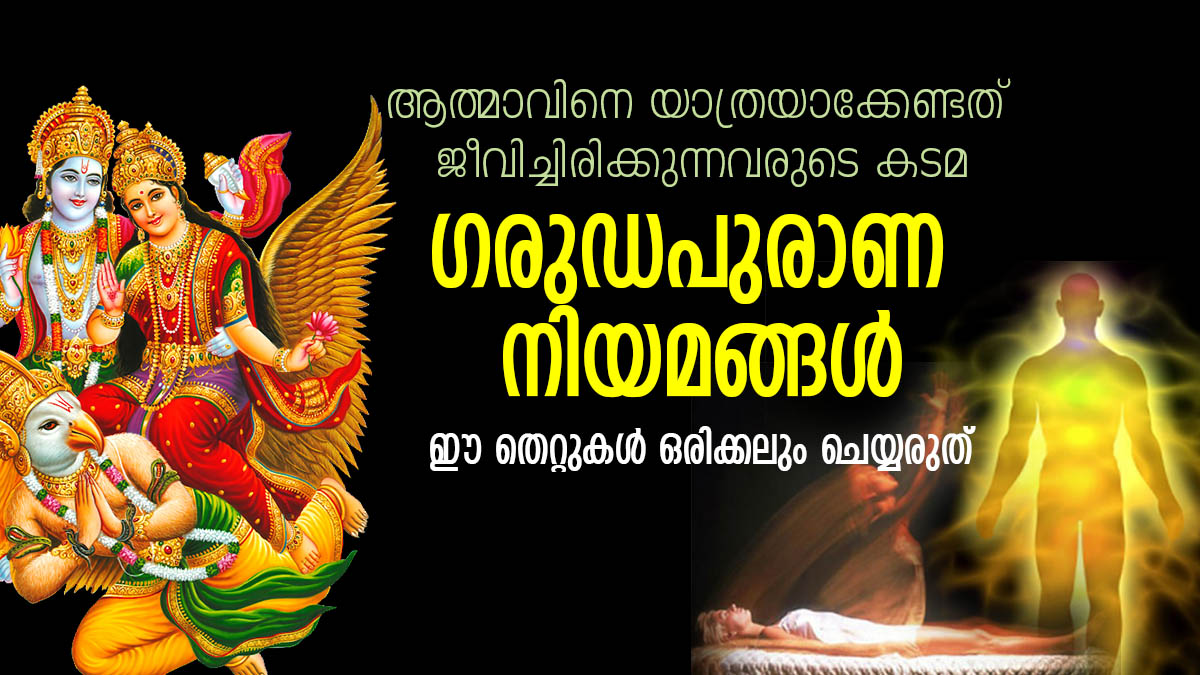 അതുപോലെ തന്നെ മരണ സമയത്ത് കുടുംബാംഗങ്ങള് എന്തുചെയ്യണം, മരണശേഷം ആത്മാവിന് എന്ത് സംഭവിക്കും എന്നതിനുള്ള ഉത്തരങ്ങളും ഇതില് ലഭ്യമാണ്. നിങ്ങളുടെ കുടുംബത്തില് ആരെങ്കിലും മരിച്ചാല്, ഗരുഡപുരാണത്തില് പറഞ്ഞിരിക്കുന്ന ഈ നിയമങ്ങള് മനസ്സില് വയ്ക്കുക. അങ്ങനെ നിങ്ങളുടെ പ്രിയപ്പെട്ടവരുടെ ആത്മാവ് ഗതികിട്ടാതെ അലയുന്നത് തടയാം.