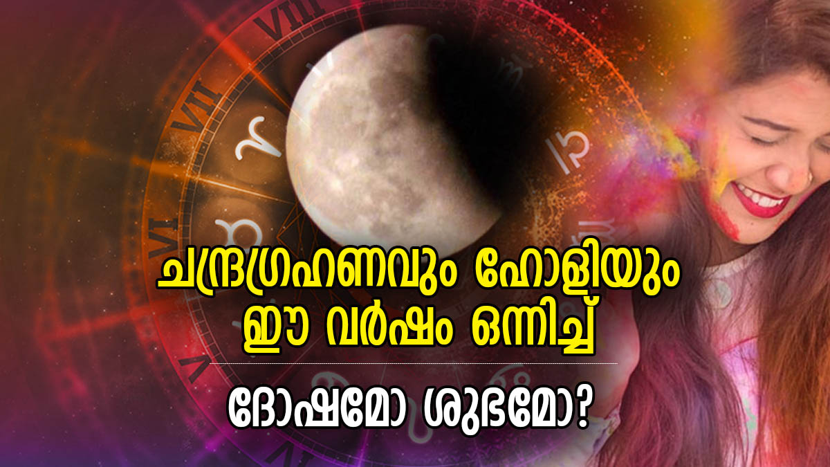 ജ്യോതിഷപരമായി, ഗ്രഹണം എന്നത് ഒരു അശുഭകരമായ സംഭവമായതിനാല്, അത് ഹോളിയെ എങ്ങനെ ബാധിക്കുമെന്നതിനെക്കുറിച്ച് പലര്ക്കും ആശങ്കയുണ്ട്. വിശ്വാസങ്ങള് പ്രകാരം ഹോളി എന്നത് തിന്മയുടെ മേന് നന്മ വിജയം നേടിയ ഒരു ഉത്സവമാണ്. അതിനാല്, ചന്ദ്രഗ്രഹണവും ഹോളിയും ഒന്നിച്ചുവരുന്നത് എന്തെങ്കിലും തരത്തില് ദോഷമാണോ അല്ലയോ എന്ന് ഇവിടെ നിങ്ങള്ക്ക് വായിച്ചറിയാം.