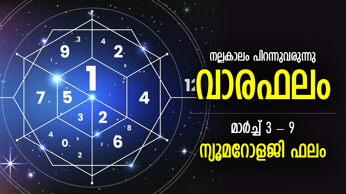 കരിയര്, ആരോഗ്യം, വിദ്യാഭ്യാസം, ബന്ധങ്ങള് തുടങ്ങിയ മേഖലകളിലെ എല്ലാ രാശിക്കാര്ക്കും ഈ ആഴ്ച എങ്ങനെയായിരിക്കുമെന്ന് അറിയാന് നിങ്ങളെ സംഖ്യാശാസ്ത്രം സഹായിക്കും. ന്യൂമറോളജി പ്രകാരം മാര്ച്ച് 3 മുതല് 9 വരെയുള്ള നിങ്ങളുടെ ഈ ആഴ്ച എങ്ങനെ എന്നറിയാന് ന്യൂമറോളജി വാരഫലം വായിക്കൂ.