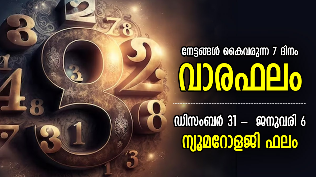 ഈ ആഴ്ച കരിയര്, ആരോഗ്യം, വിദ്യാഭ്യാസം, ബന്ധങ്ങള് തുടങ്ങിയ മേഖലകളിലെ എല്ലാ രാശിക്കാര്ക്കും ഈ ആഴ്ച എങ്ങനെയായിരിക്കുമെന്ന് അറിയാന് നിങ്ങളെ സംഖ്യാശാസ്ത്രം സഹായിക്കും. ന്യൂമറോളജി പ്രകാരം ജനുവരി 1 മുതല് 7 വരെയുള്ള നിങ്ങളുടെ ഈ ആഴ്ച എങ്ങനെ എന്നറിയാന് ന്യൂമറോളജി വാരഫലം വായിക്കൂ.