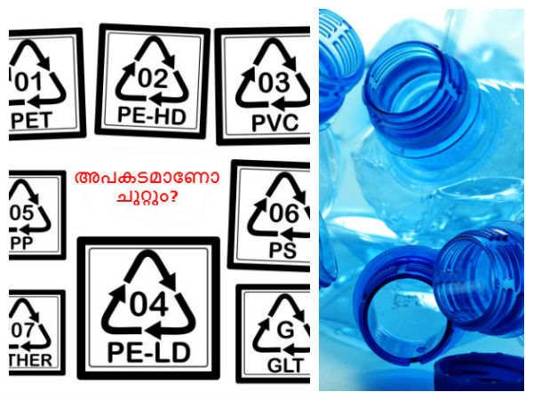 ഇതാകട്ടെ ആരും അത്ര കണ്ട് ശ്രദ്ധിക്കാറില്ല. എന്നാല് നമ്മള് ഉപയോഗിക്കുന്ന പ്ലാസ്റ്റിക് സുരക്ഷിതമാണോ എന്ന് അറിയാനാണ് ഈ അക്കങ്ങള് എന്നത് പലര്ക്കും അറിയില്ല. എന്നാല് കുപ്പികള്ക്കടിയില് ത്രികോണ ചിഹ്നത്തിനുള്ളില് നല്കിയിരിയ്ക്കുന്ന നമ്പറുകള് എന്തിനെയാണ് സൂചിപ്പിക്കുന്നത് എന്ന് നോക്കാം.