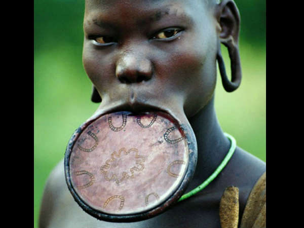 എത്യോപ്പ്യയിലെയും സുഡാനിലേയും സുര്മ വിഭാഗത്തില് പെട്ട് സ്ത്രീകള് ചുണ്ടിന് ഭംഗി വര്ദ്ധിപ്പിക്കാന് ലിപ് പ്ലേറ്റ് ചുണ്ടിനുള്ളില് കുത്തിത്തിരുകും. ഇതേ പോലെ തന്ന ചെവിയുടെ ഓട്ട വലുതാക്കാനും ഇത്തരത്തില് ചെയ്യാറുണ്ട്.