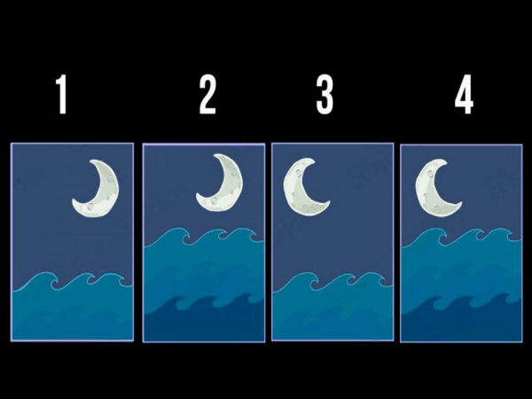 ഇടത്തോട്ടു തിരിഞ്ഞ ചന്ദ്രനും ഉയര്ന്നു നില്ക്കുന്ന തിരകളും.35 ശതമാനം പേരും തെരഞ്ഞെടുക്കുന്ന ചിത്രമിതാണ്. കാര്യങ്ങളെല്ലാം ശാന്തമായി എടുക്കുന്ന കൂട്ടര് ക്ഷമാശീലം ഇവരുടെ സ്വഭാവമാണ്. ഉയര്ന്ന ഊര്ജമുള്ളവര്. ഊര്ജസ്വലത നല്കുന്ന കാര്യങ്ങള് ചെയ്യാന് ആഗ്രഹിയ്ക്കുന്നവര്.