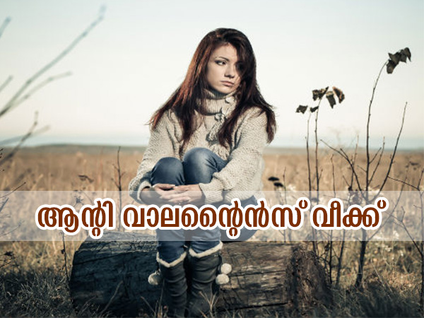 വാലന്റൈന്സ് ഡേ ആഘോഷങ്ങള് കണ്ട് നിങ്ങള് വിഷമിക്കേണ്ട, ഫെബ്രുവരി നിങ്ങള്ക്കും നല്കുന്നുണ്ട് ആഘോഷത്തിനുള്ള വക. അതാണ് ആന്റി വാലന്റൈന്സ് വീക്ക് അഥവാ വാലന്റൈന് വിരുദ്ധ വാരം. വാലന്റൈന്സ് ഡേയ്ക്ക് തൊട്ടുപിന്നാലെയാണ് ഈ ആഴ്ച വരുന്നത്. ഇത് പ്രണയവുമായി തികച്ചും ബന്ധമില്ലാത്തതാണ്. ഫെബ്രുവരി 15-ന് സ്ലാപ്പ് ഡേയില് ആരംഭിച്ച് ഫെബ്രുവരി 21-ന് ബ്രേക്ക്-അപ്പ് ഡേയോടെ ഇത് സമാപിക്കുന്നു. ഈ ദിവസങ്ങള് വളരെ രസകരമാണ്. എന്താണ് ആന്റി വാലന്റൈന്സ് വാരമെന്ന് നമുക്ക് നോക്കാം.