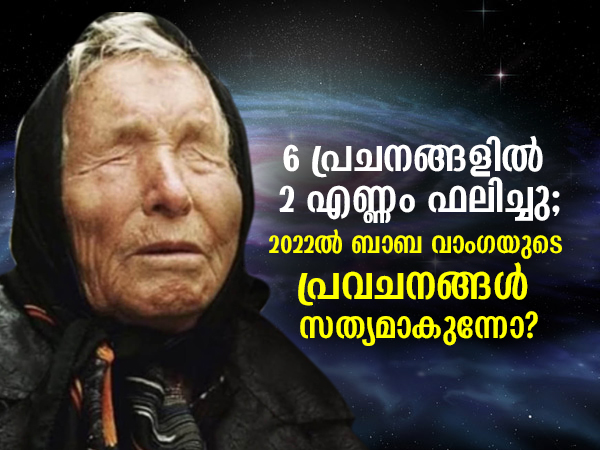 ചെര്ണോബില് ദുരന്തം, ഡയാന രാജകുമാരിയുടെ മരണം, സോവിയറ്റ് യൂണിയന്റെ തകര്ച്ച, സുനാമി, ബരാക് ഒബാമയുടെ പ്രസിഡന്റ് സ്ഥാനം, 9/11 ആക്രമണം എന്നിവ പ്രവചിച്ച് ലോകത്തിന്റെ ശ്രദ്ധ പിടിച്ചുപറ്റിയ ഭാവി പ്രവാചകയാണ് ബാബ വാംഗ. ഇപ്പോള് വീണ്ടും അവര് വാര്ത്തകളില് നിറയുകയാണ്. കാരണം 2022 ല് ലോകത്ത് സംഭവിച്ചേക്കാമെന്ന് അവര് പ്രവചിച്ച 6 കാര്യങ്ങളില് 2 എണ്ണം ഇതിനകം സംഭവിച്ചുകഴിഞ്ഞു. ബാല്ക്കണിലെ നോസ്ട്രഡാമസ് എന്ന് വിളിപ്പേരുള്ള അവരുടെ പ്രവചനങ്ങള് 85 ശതമാനവും ശരിയാണെന്ന് പറയപ്പെടുന്നു. ശാസ്ത്രീയമായി വിശദീകരണം ഒന്നുമില്ലെങ്കിലും ബാബ വാംഗയുടെ പ്രവചനങ്ങളെ പല ആളുകളും ഗൗരവമായാണ് കണക്കാക്കുന്നത്.