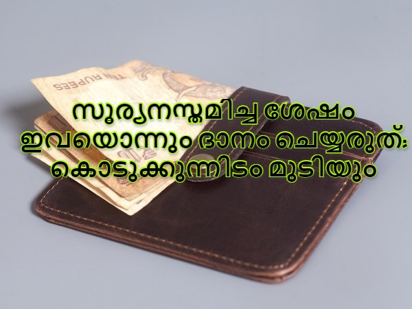 മനുഷ്യന് ഒരു സാമൂഹ്യ ജീവിയാണ്. അതുകൊണ്ട് തന്നെ ഒന്നല്ലെങ്കില് മറ്റൊരു കാര്യത്തിന് നാം അയല്വാസികളെ അല്ലെങ്കില് സുഹൃത്തുക്കളെ എല്ലാം ആശ്രയിക്കുന്നു. എന്നാല് ജ്യോതിഷ വിശ്വാസ പ്രകാരം, സൂര്യാസ്തമയത്തിനു ശേഷം ആര്ക്കും നല്കാന് പാടില്ലാത്ത ചില കാര്യങ്ങളുണ്ട്. സൂര്യാസ്തമയത്തിനുശേഷം ആര്ക്കും നല്കാന് പാടില്ലാത്ത കാര്യങ്ങള് ഏതെന്ന് നമുക്ക് അറിയാമോ? ഇത്തരം കാര്യങ്ങളും വിശ്വാസങ്ങളും ഇന്നും നിലനില്ക്കുന്നുണ്ട് എന്നുള്ളതാണ് കാര്യം. എന്നാല് അതിലുപരി ഇത്തരം കാര്യങ്ങള്ക്ക് ഇന്നുമുള്ള പ്രസക്തി ചോദ്യം ചെയ്യപ്പെടുകയും ചെയ്യുന്നുണ്ട്. എന്ത് തന്നെയായാലും നിങ്ങള് അറിഞ്ഞിരിക്കേണ്ട ചില കാര്യങ്ങള് ഇതാണ്.