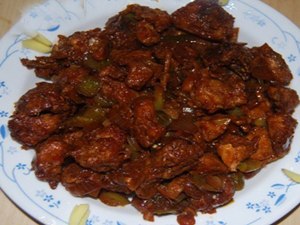 ഒരുപാത്രത്തില് എണ്ണയൊഴിക്കുക. ഇതിലേക്ക് സവാള ചേര്ത്ത് നല്ലപോലെ വഴറ്റുക. ബ്രൗണ് നിറമായിക്കഴിഞ്ഞാല് അരിഞ്ഞു വച്ചിരിക്കുന്ന വെളുത്തുള്ളി, ഇഞ്ചി തുടങ്ങിയവ ഇതിലേക്കു ചേര്ക്കുക. ഇത് നല്ലപോലെ വഴറ്റിയ ശേഷം ചിക്കന് കഷ്ണങ്ങള് ചേര്ത്ത് നല്ലപോലെ ഇളക്കണം. ചിക്കനിലെ വെള്ളം മുഴുവനും പോകണം.