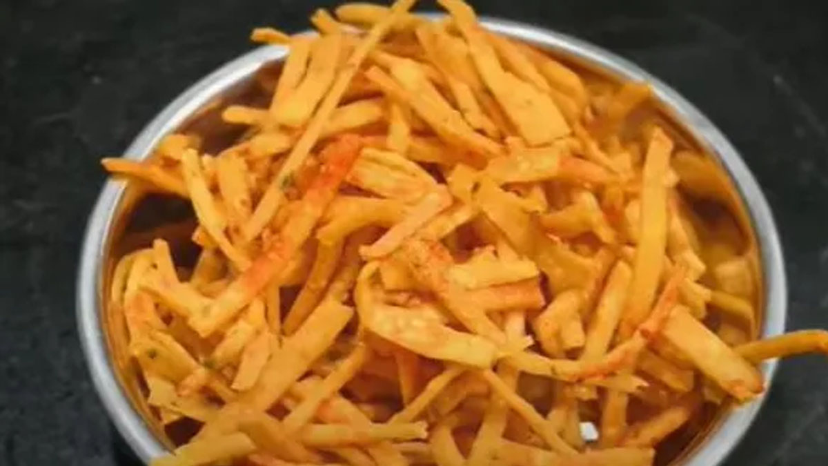 * ശേഷം കത്തി ഉപയോഗിച്ച് ചിപ്സ് പോലെ നീളമുള്ള കഷ്ണങ്ങളാക്കി